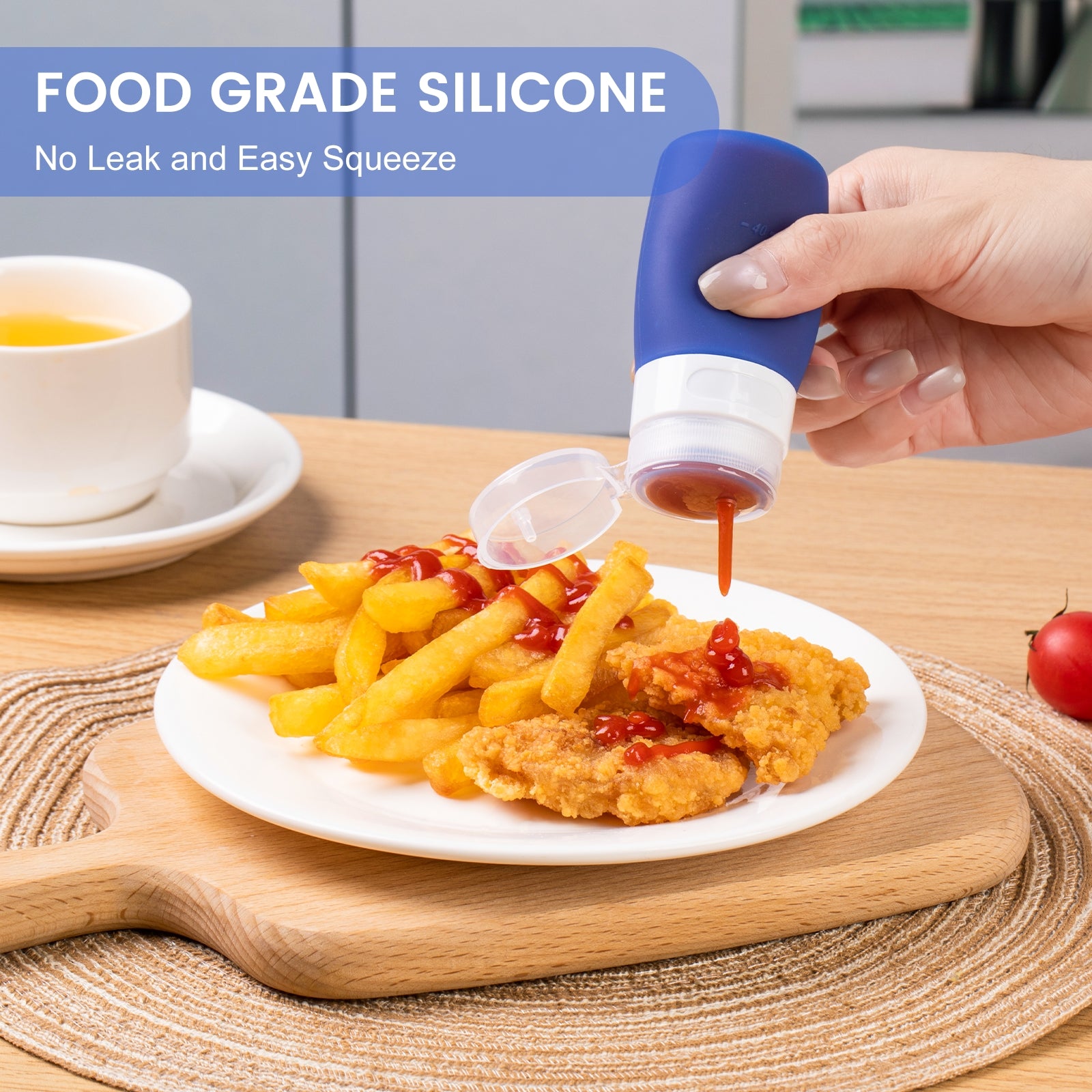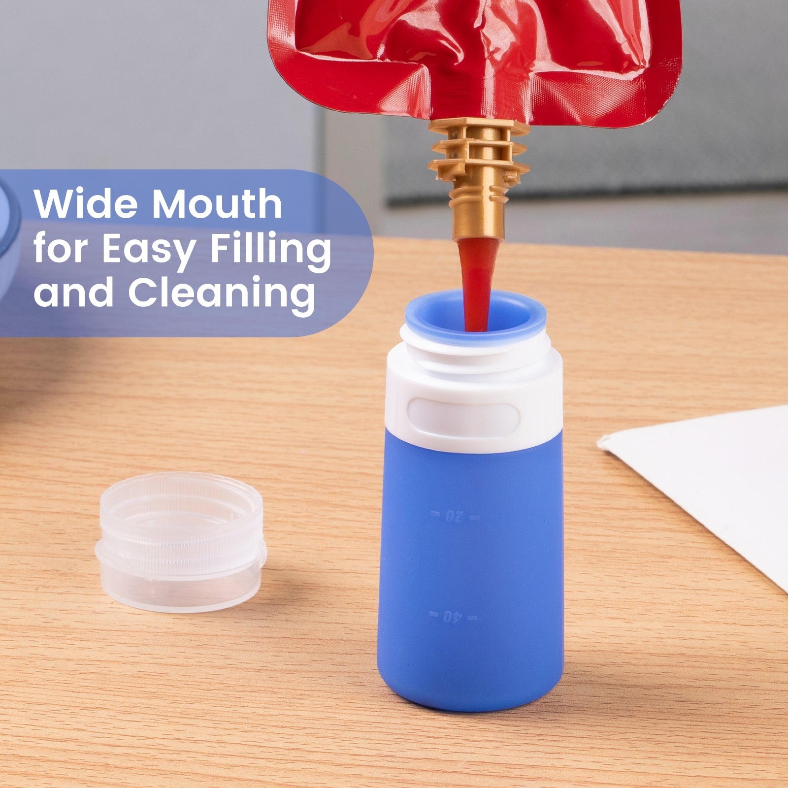 Convenient Use - Food-grade silicone salad dressing bottles, soft for easy squeeze; Wide mouth & steady base facilitate filling; Built-in measurement scale for portion control.